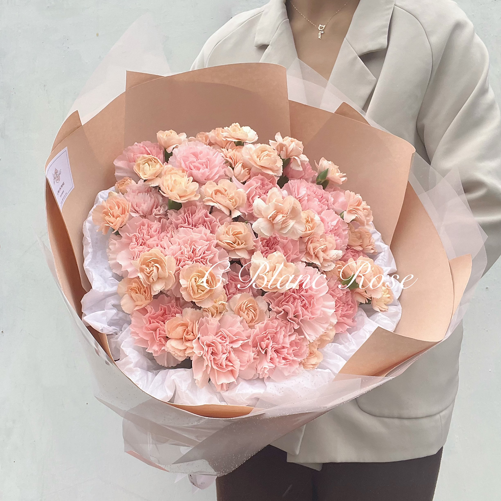 • 康乃馨:母爱的象征,粉色康乃馨传递感恩与温馨,紫色康乃馨展现高贵与典雅。Carnations: A symbol of maternal love, with pink carnations expressing gratitude and warmth, while purple carnations convey elegance and nobility.